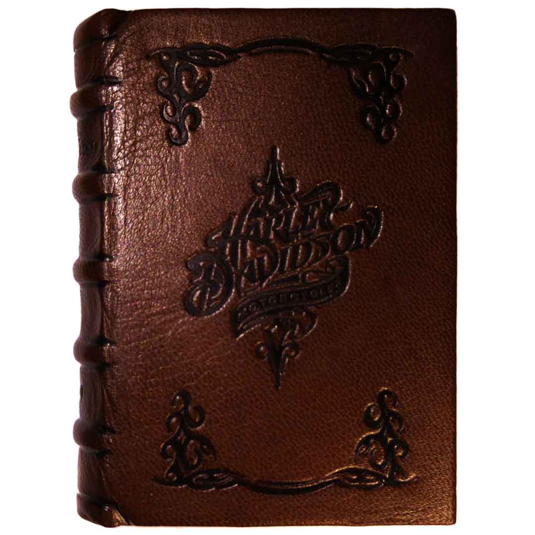 Edición monográfica de bibliofilia de la Harley Davidson con los sellos de 2014 y el matasellos conmemorativo. Encuadernación artesanal en plena piel. Obra sobre el mundo de la Harley y los sellos de esta motocicleta