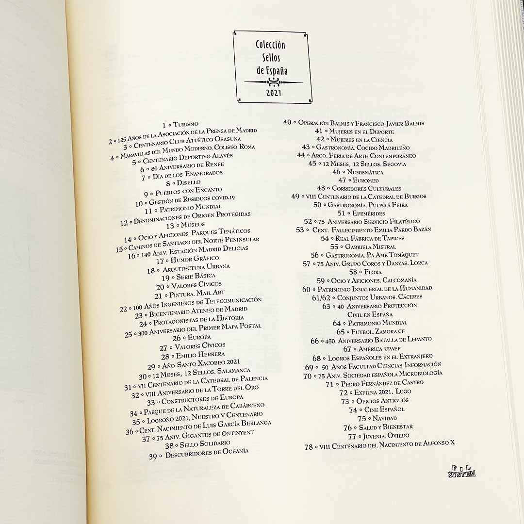 | Extras incluidos | Índice recopilatorio con las emisiones anuales, No incluye los sellos, Portadilla introductoria |