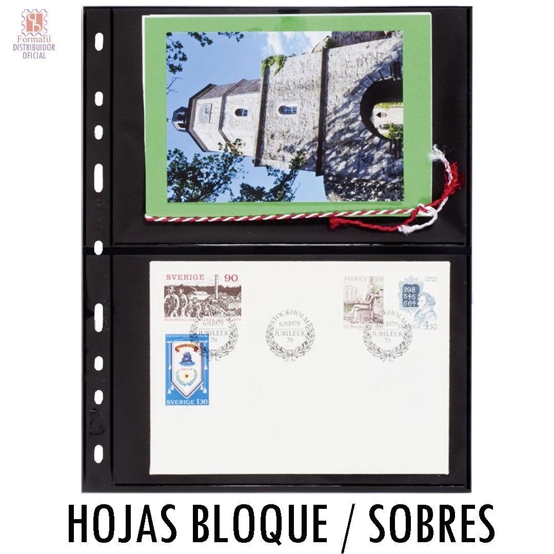Hojas-funda ideal para conservar tarjetas postales y hojas bloque; u otros documentos con una altura inferior a 120 mm. Se recomienda que no sobresalga por encima de esta medida, ya que la parte no cubierta por la funda, no queda protegida.