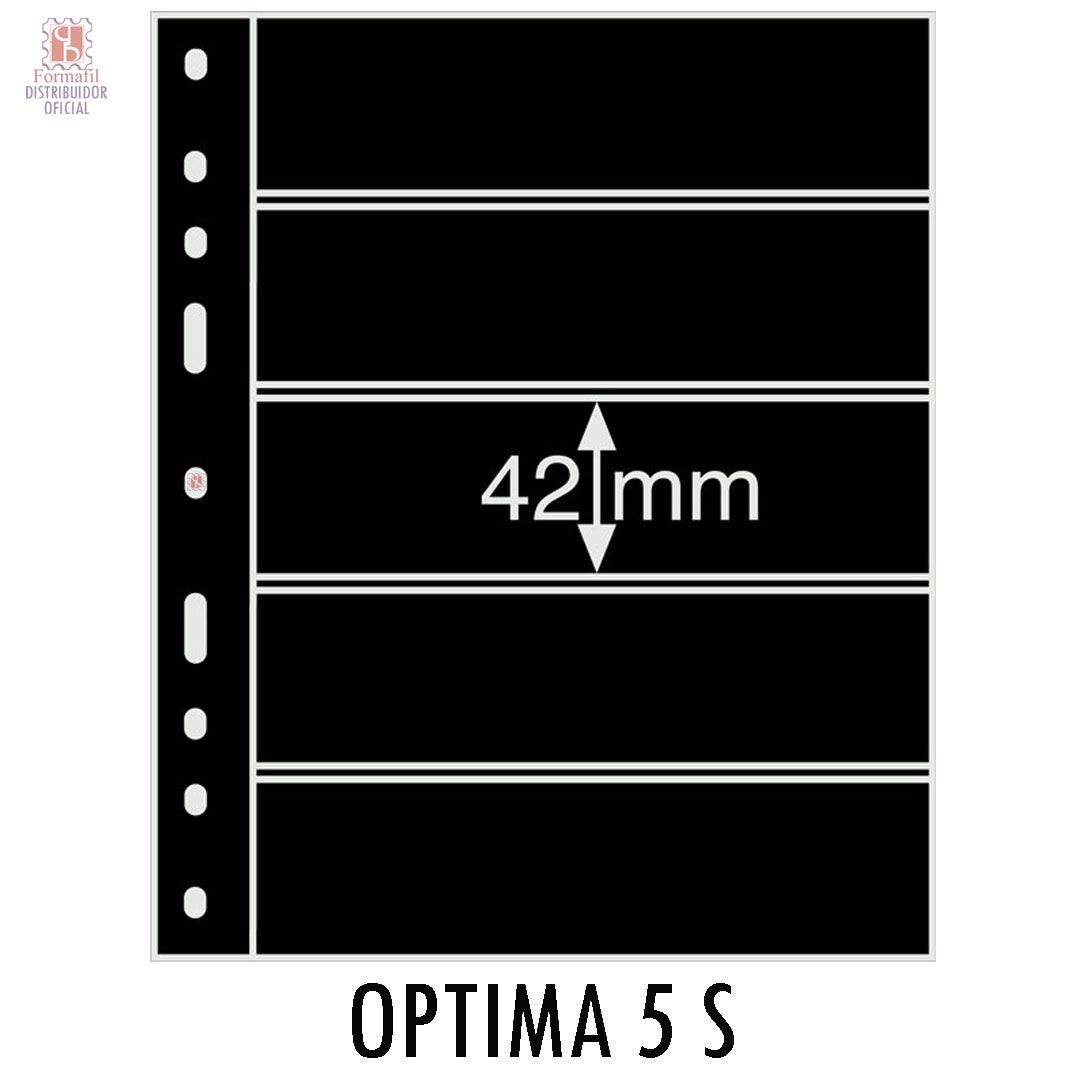 Las hojas se venden por paquetes. Cada paquete incluye 10 hojas del modelo 5S. Todas las hojas óptima se encuentran 100% libres de plastificantes y ácidos, para una excelente conservación de su colección.
