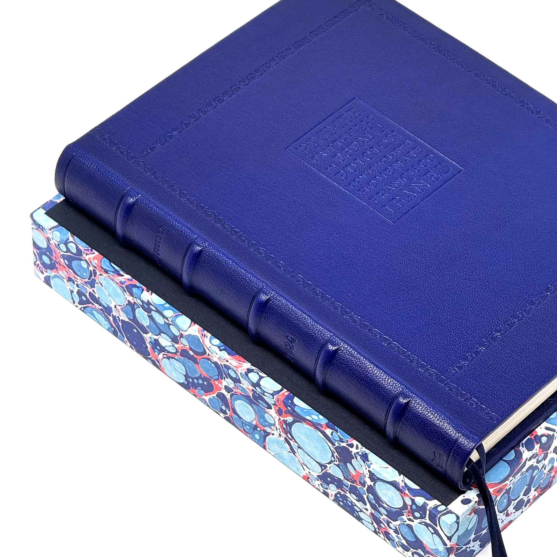 La encuadernación gran lujo, siguiendo el paciente saber de los antiguos maestros, está realizada de forma totalmente artesanal por Ángel Hernán, experto en encuadernaciones clásicas, en holandesa, tapas artísticas en papel de aguas y lomo piel de cabra chagrén. Gofrada con cinco nervios de ornamentación, rotulado en seco, con cintas de lectura. Forman parte de esta misma edición 10 ejemplares encuadernados en plena piel.